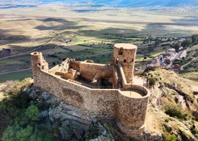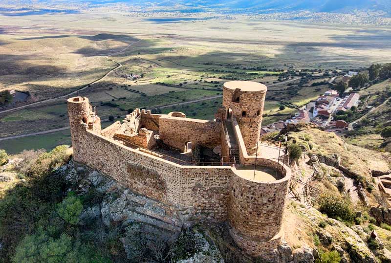 Uno de sus edificios más emblemáticos es la Iglesia Parroquial de Santiago Apóstol, de estilo mudéjar. Destaca su espadaña construida en ladrillo y su forma recuerda a una gran almena de grada. La mayor parte del edificio es del S. XV aunque sufre modificaciones en el XVII. Otro monumento de interés es el castillo de origen musulmán, aunque es probable que fuese reedificado en el S. XV. La forma de la planta es de rectángulo irregular. Se utilizó para su construcción sillarejo y ladrillo. Posee tres torres cilíndricas y restos de portadas de ladrillo de estilo mudéjar con puertas enmarcadas por alfiz, además de un aljibe acondicionado para su visita. En la actualidad se llevan a cabo las excavaciones concernientes al poblado musulmán que protegían sus murallas primigénias.